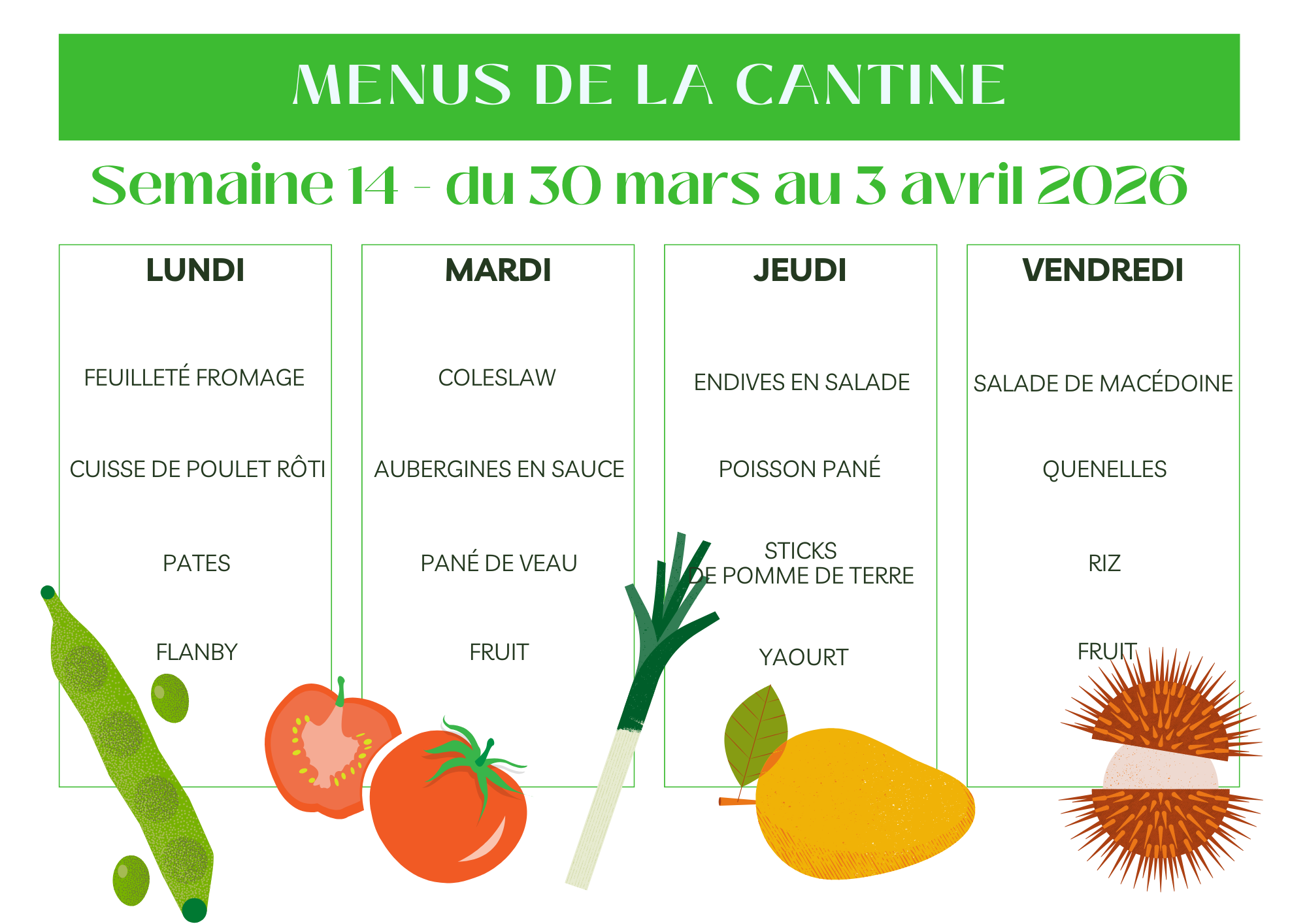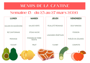 Menus de la cantine scolaire